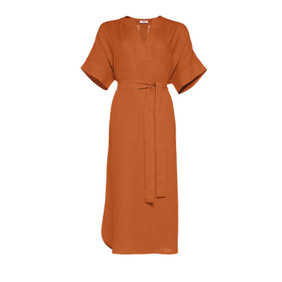 Confeccionado en lino, el caftán Bibi es una prenda práctica y elegante. Con o sin cinturón, ofrece una comodidad incomparable gracias a su tejido de lino ligero y aéreo, y a su forma acampanada. Insertos en el escote y la parte inferior de las mangas permiten estructurar el conjunto.