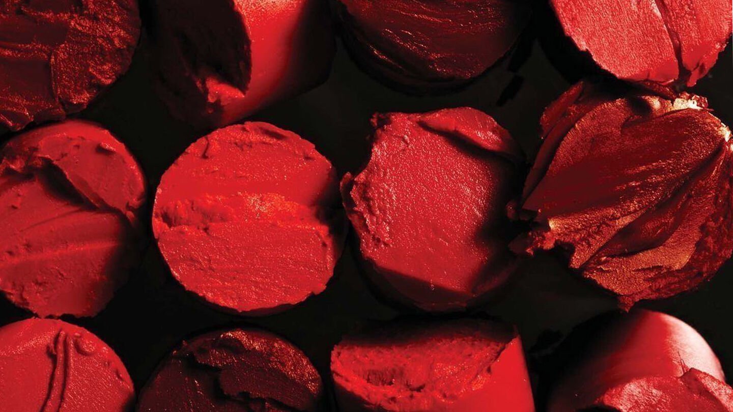 Un rojo barra de labios intenso inspirado en los terciopelos de las tapicerías de los años 70.