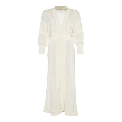 El vestido largo Stella es una prenda de malla estilo ganchillo con acabados acanalados de rayas, que realzan con elegancia la silueta. La ligereza de su material y la elegancia de su punto la convierten en una prenda tan cómoda como sofisticada.- Vestido largo- Manga larga abullonada ceñida en los puños- Acabados acanalados en los puños, cintura, escote, parte delantera central y bajo- Abertura en la parte delantera central- Malla estilo ganchillo- Hecho en Italia